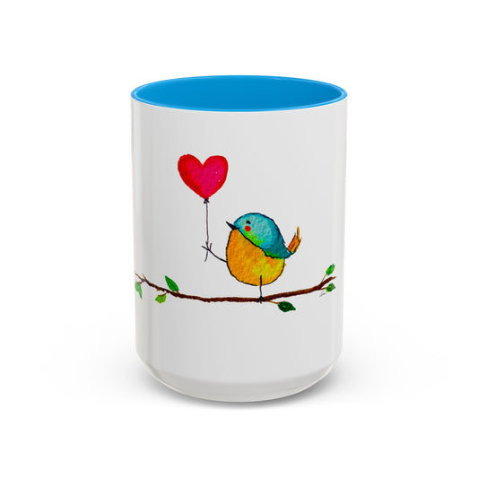 Bird with a Heart Balloon Accent Mug