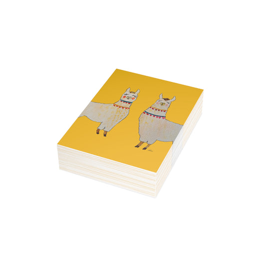 Two Llamas Yellow Postcard Bundles with Envelopes