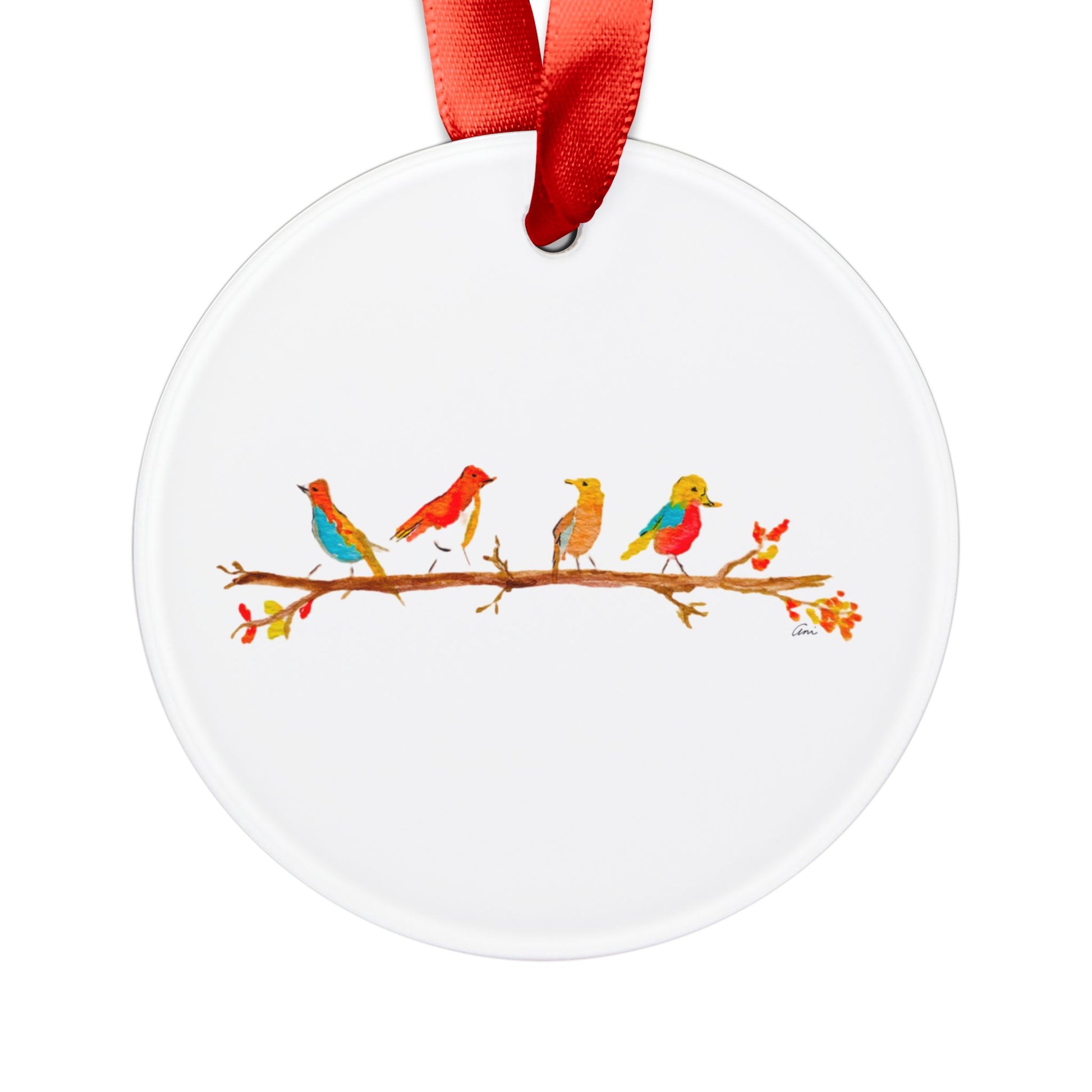 Birds on a Branch Acrylic Ornament with Ribbon