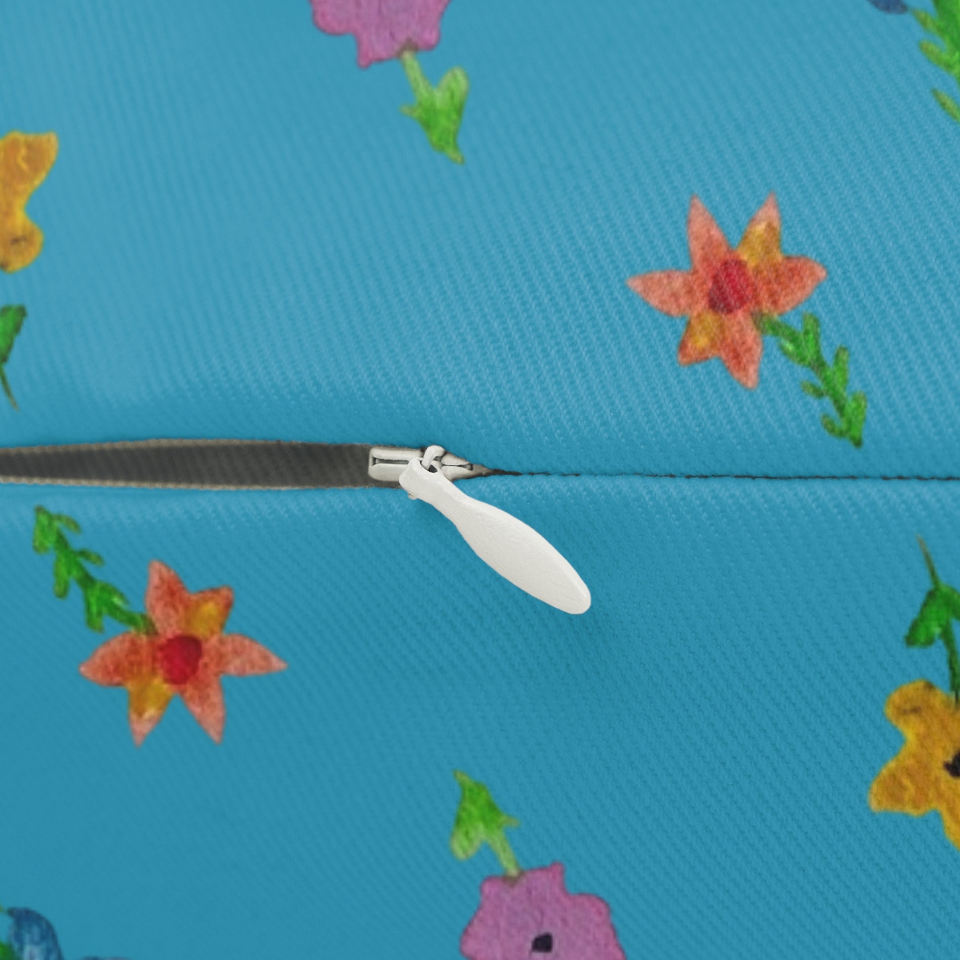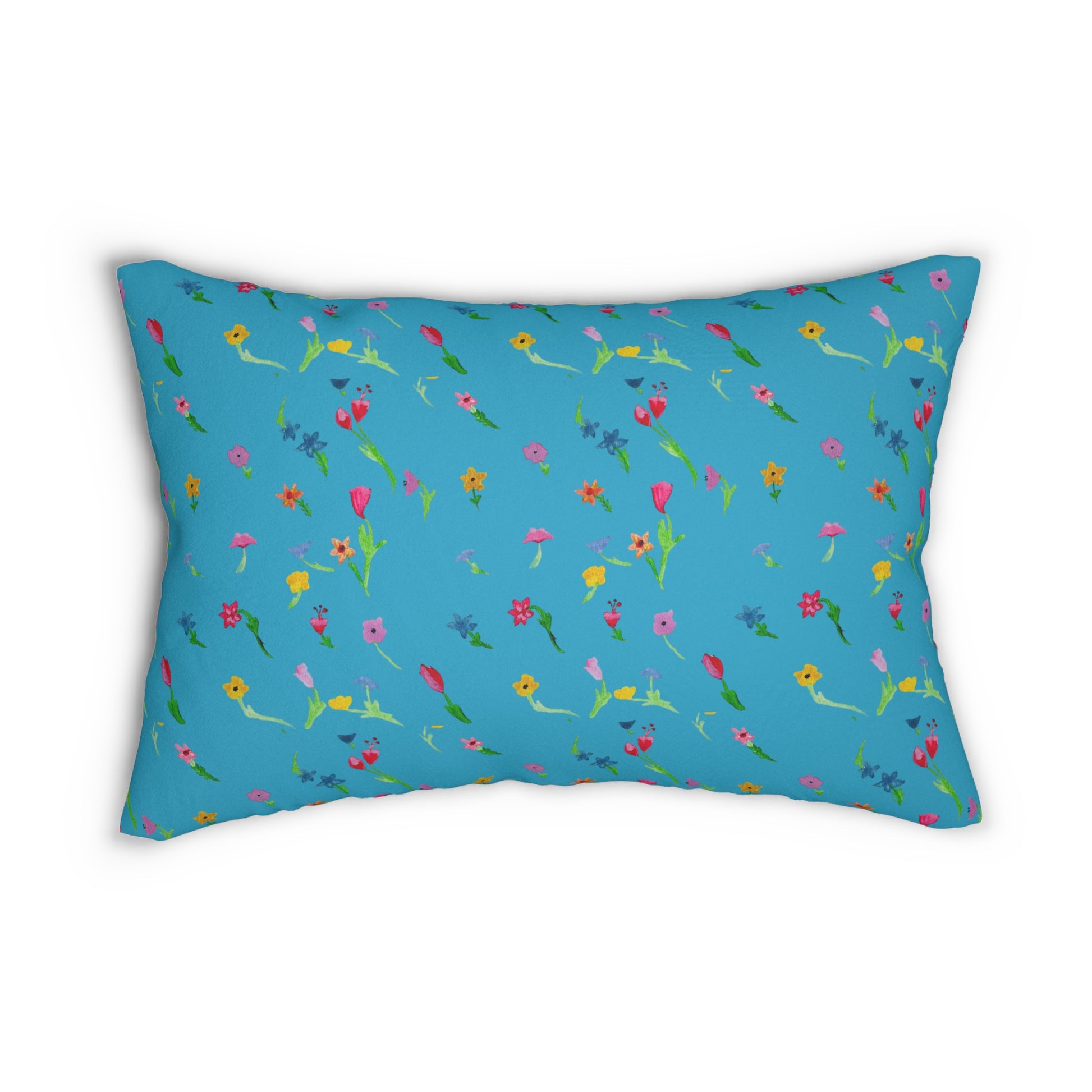 Floating Flowers Spun Polyester Turquoise Lumbar Pillow