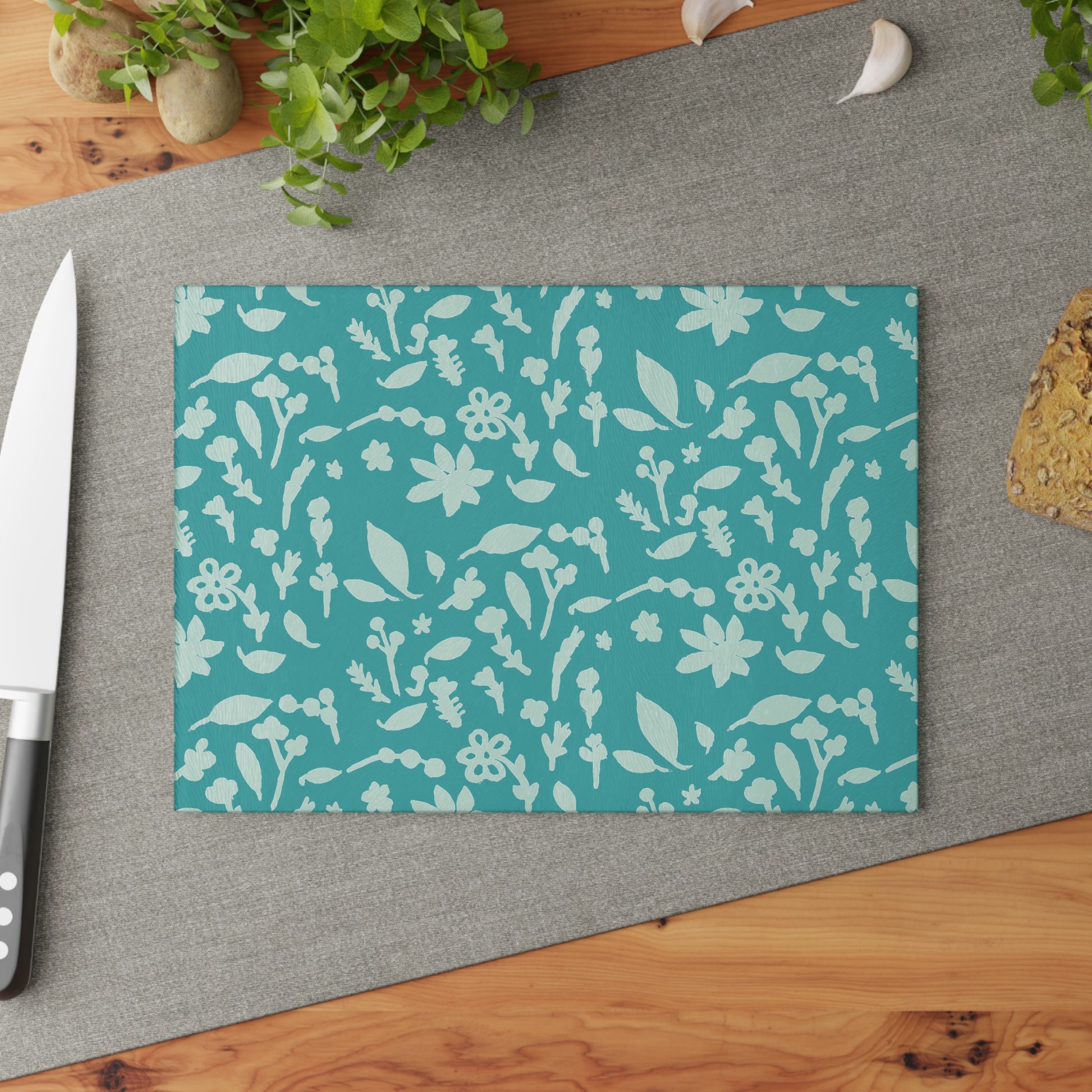 Bring a touch of character into your kitchen with this custom glass cutting board. Its tampered glass material is robust and helps prepare many a tasty meal for a long time to come. The textured surface makes it an ideal chopping, slicing, and dicing area. Available in two sizes. Tempered glass material with a textured surface. Four rubber dots for additional stability. Hand wash recommended.