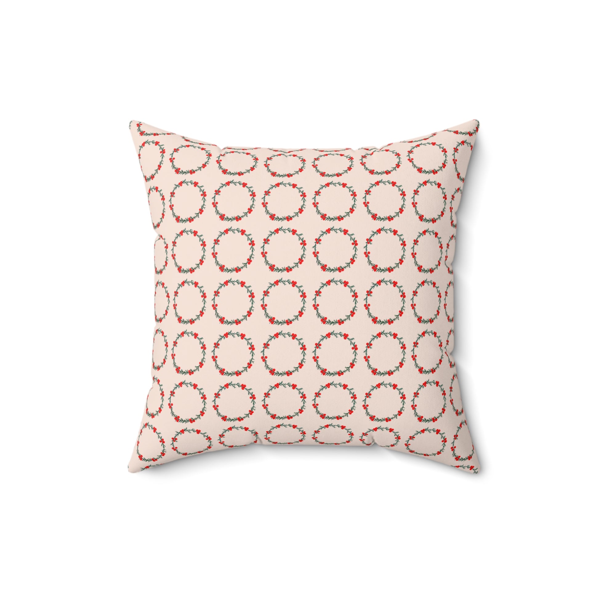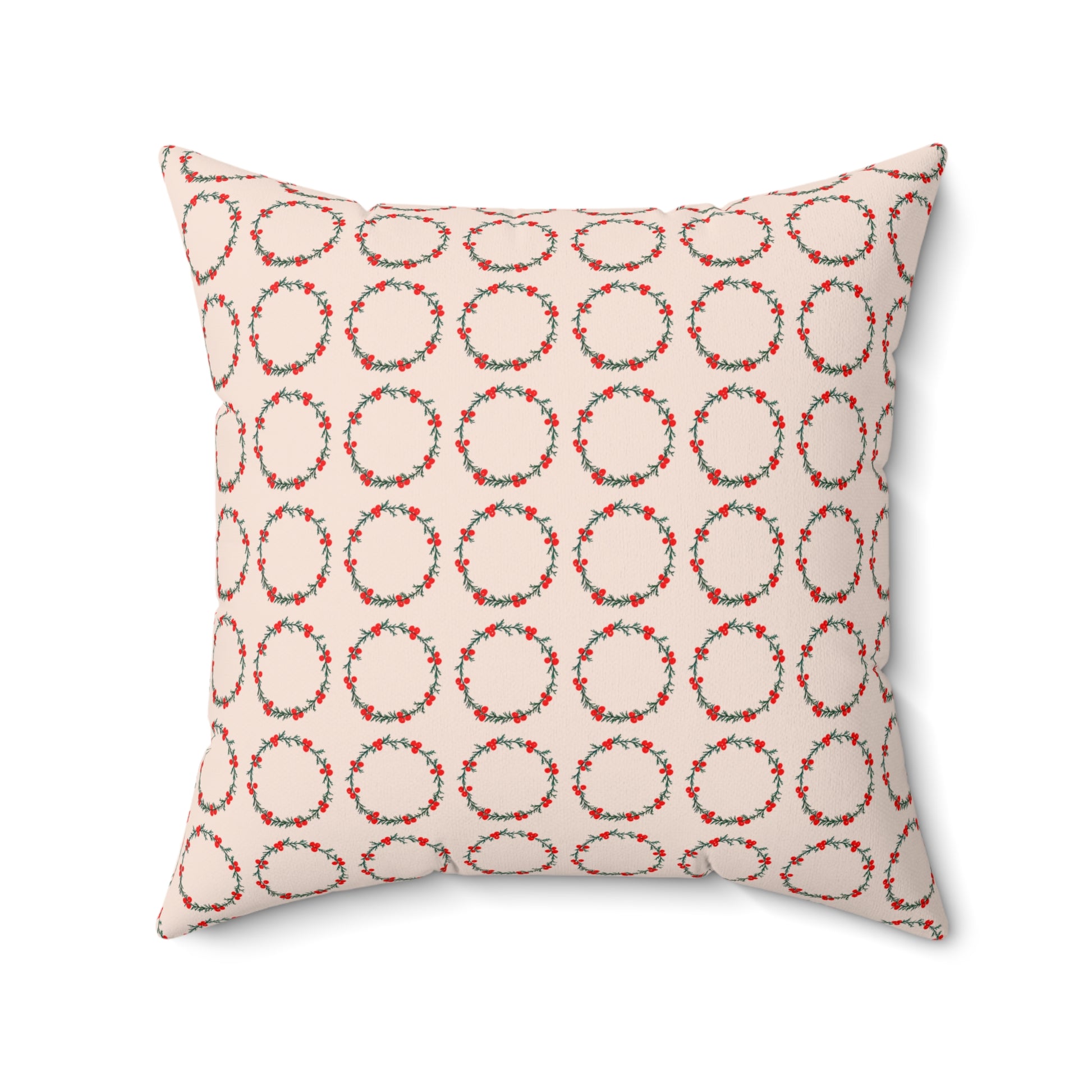 Wreath Faux Suede Cream Square Pillow